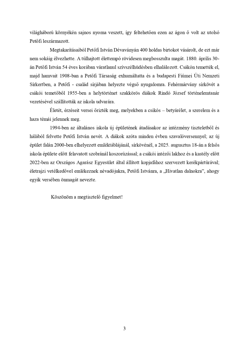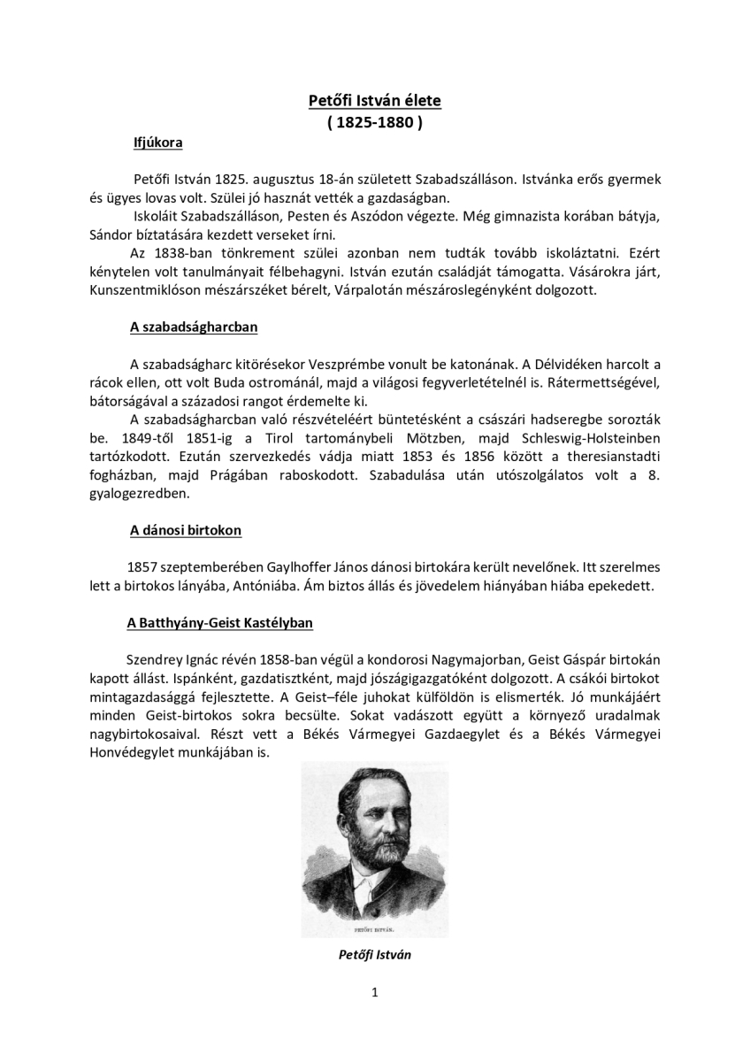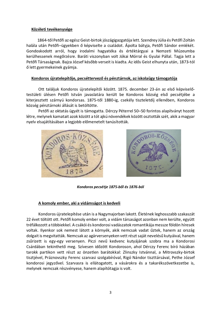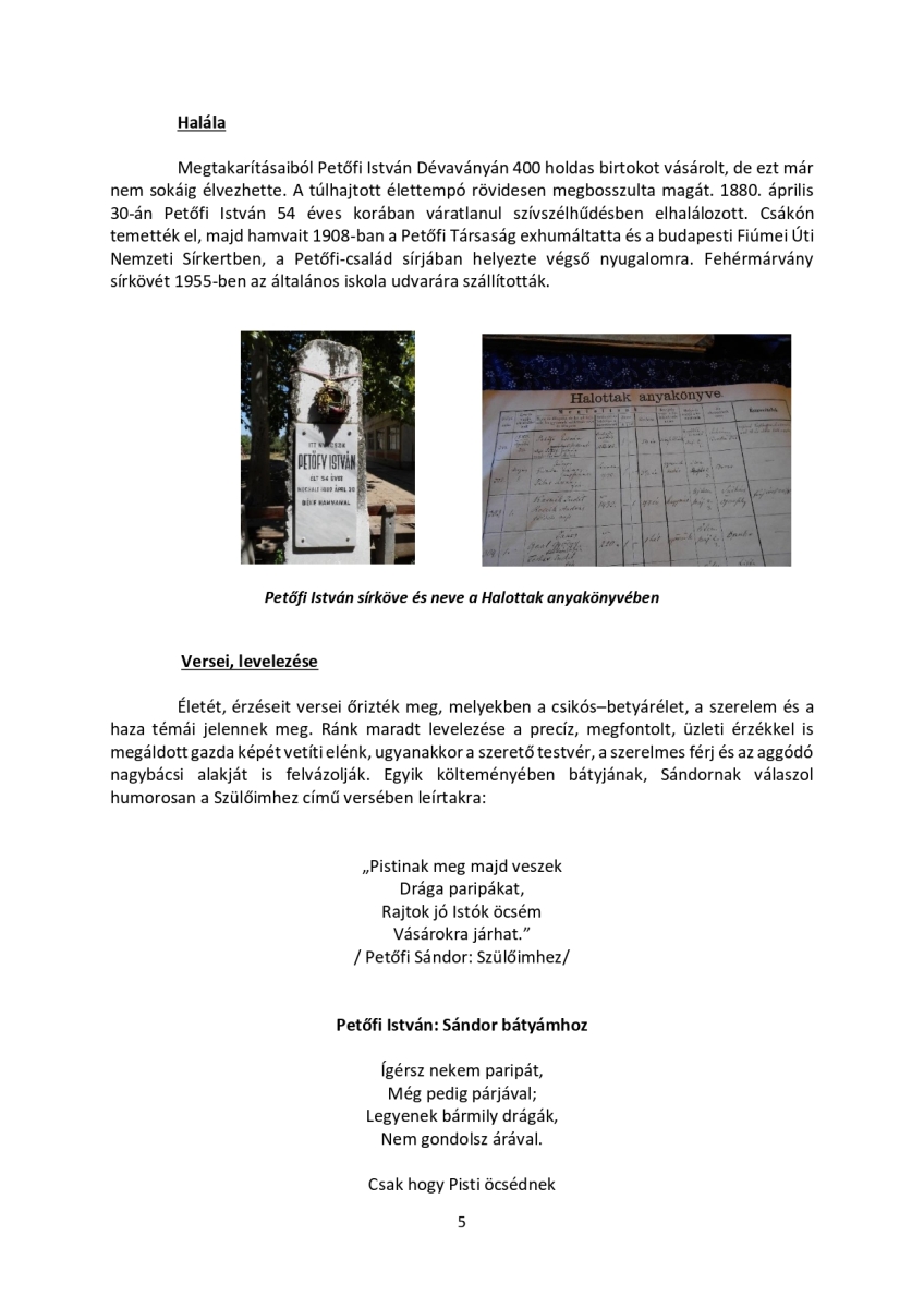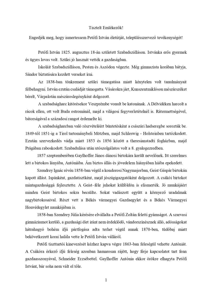 A jubileumi megemlékezésen Klucsik árpád történelemtanár idézte fel a Geist uradalom intézőjének életútját, majd Keresztes János OAE elnök mondott beszédet. Petőfi István életútjáról ilyen részletességgel még nem hallottunk, ezért a szerző, Klucsik Árpád engedélyével közzétesszük a beszéd mellett az általa írt életrajzot is. Köszönjük!